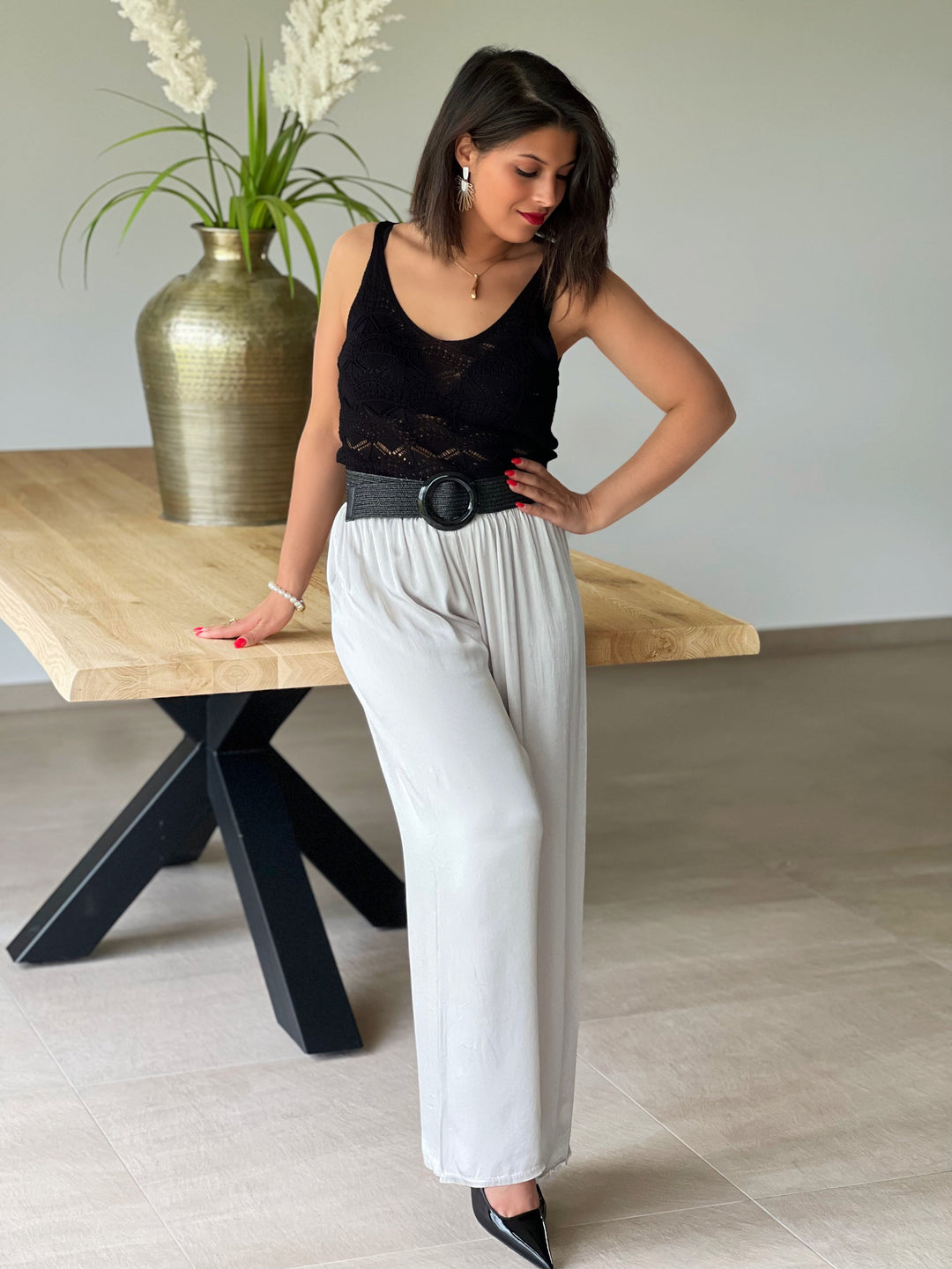 Elenara – Flowy High-Waist Palazzo Beige Pants for Women