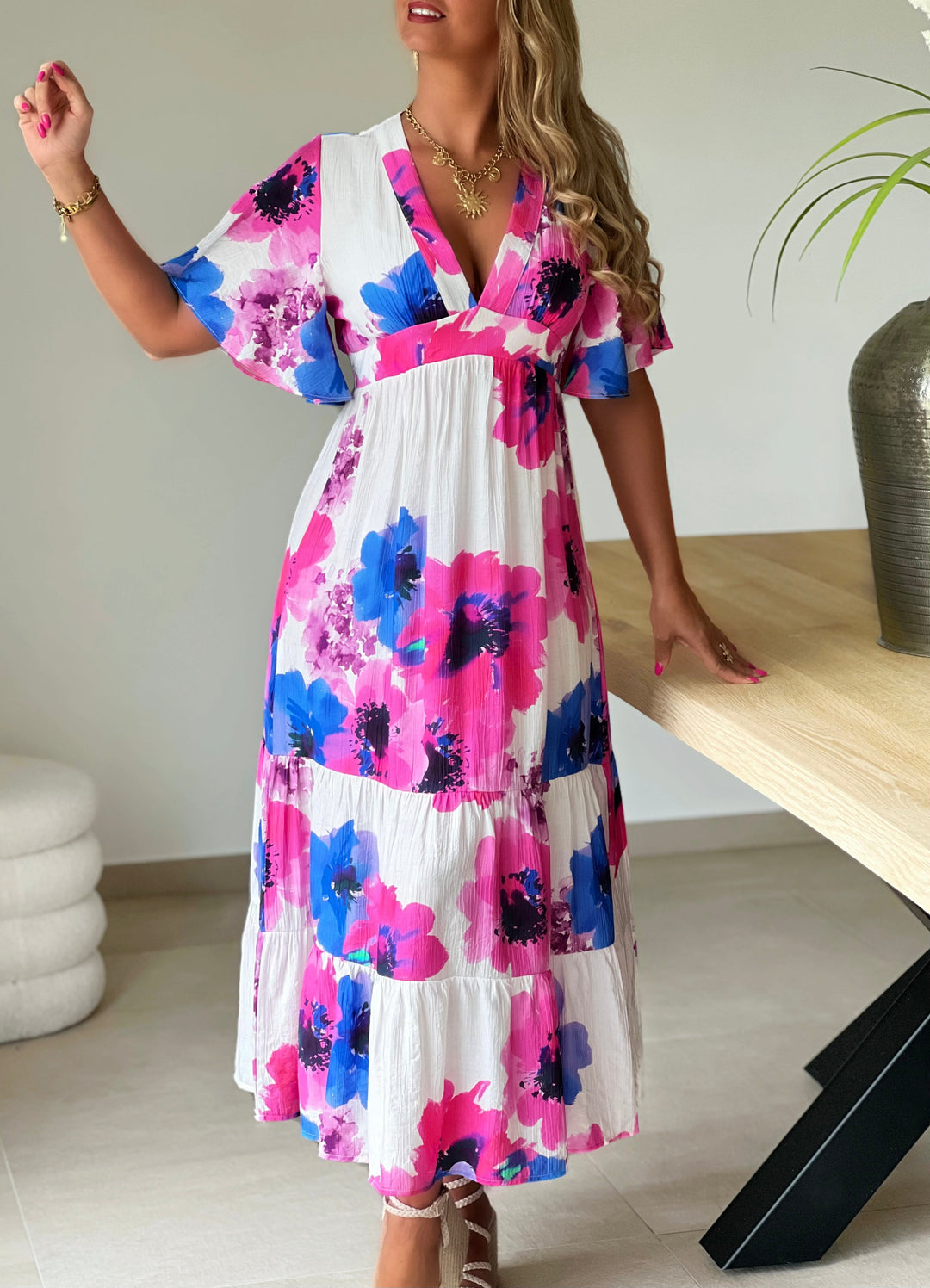 Florvienne – Pastel Floral Chiffon Midi Dress for Women