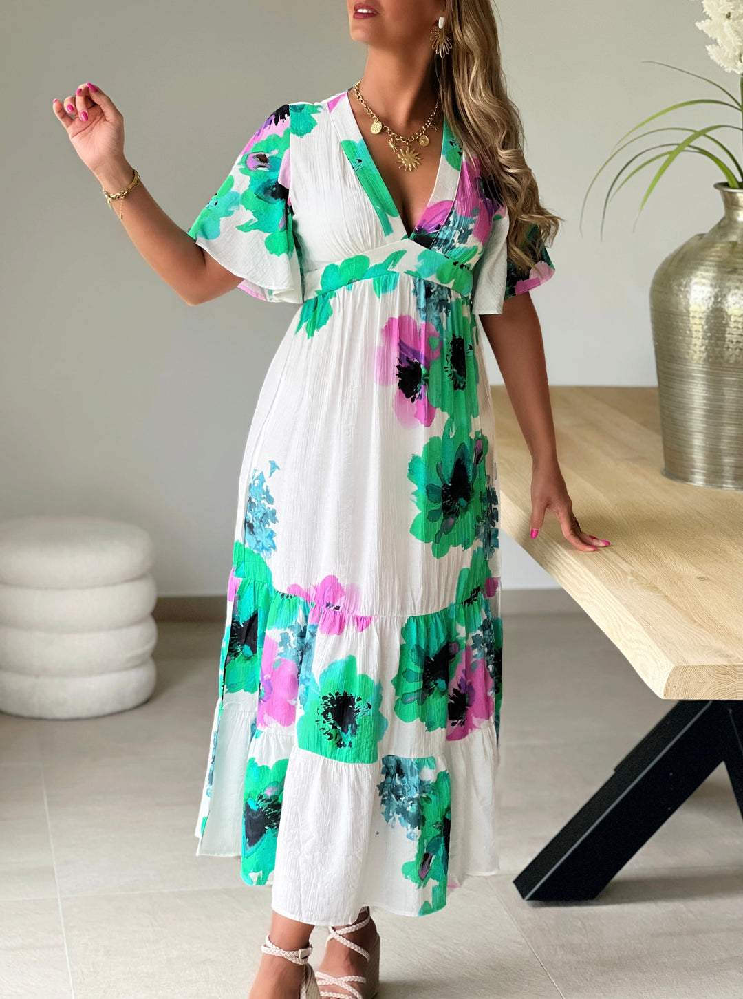 Florvella – Watercolor Bloom Green Midi Dress for Women