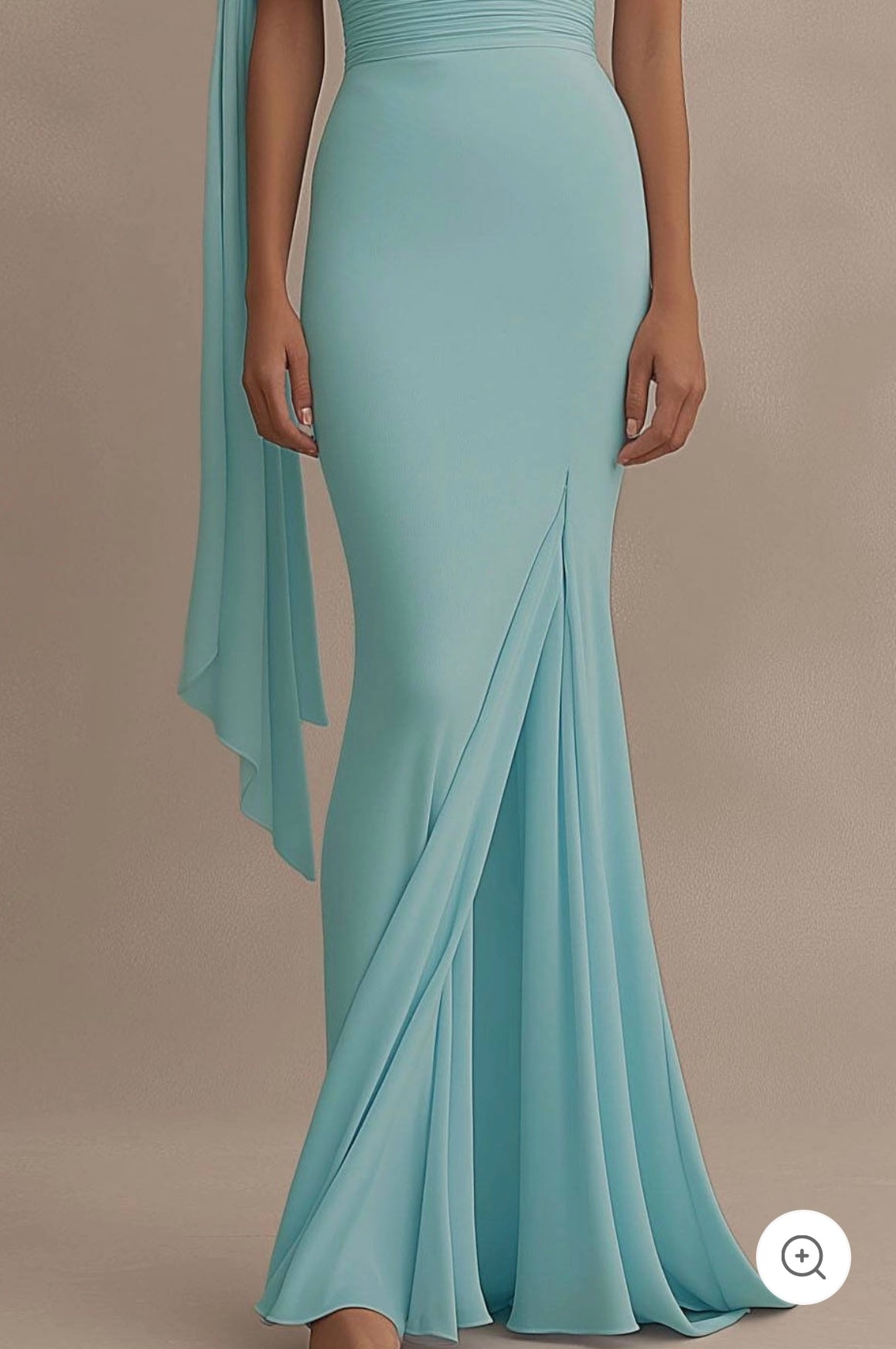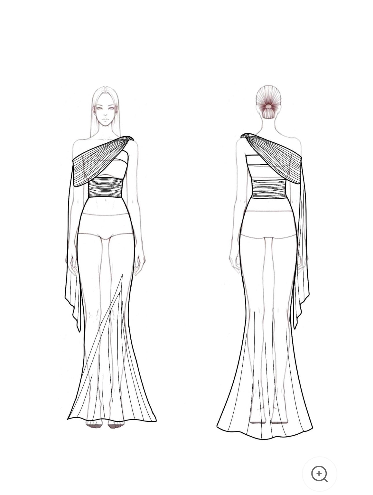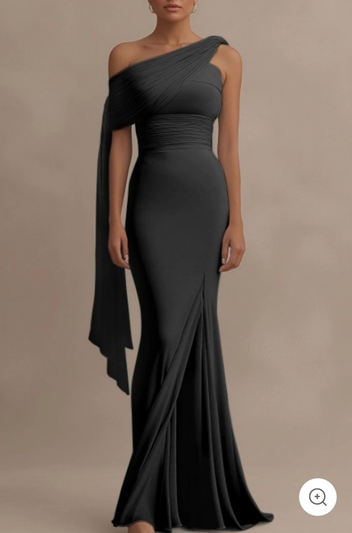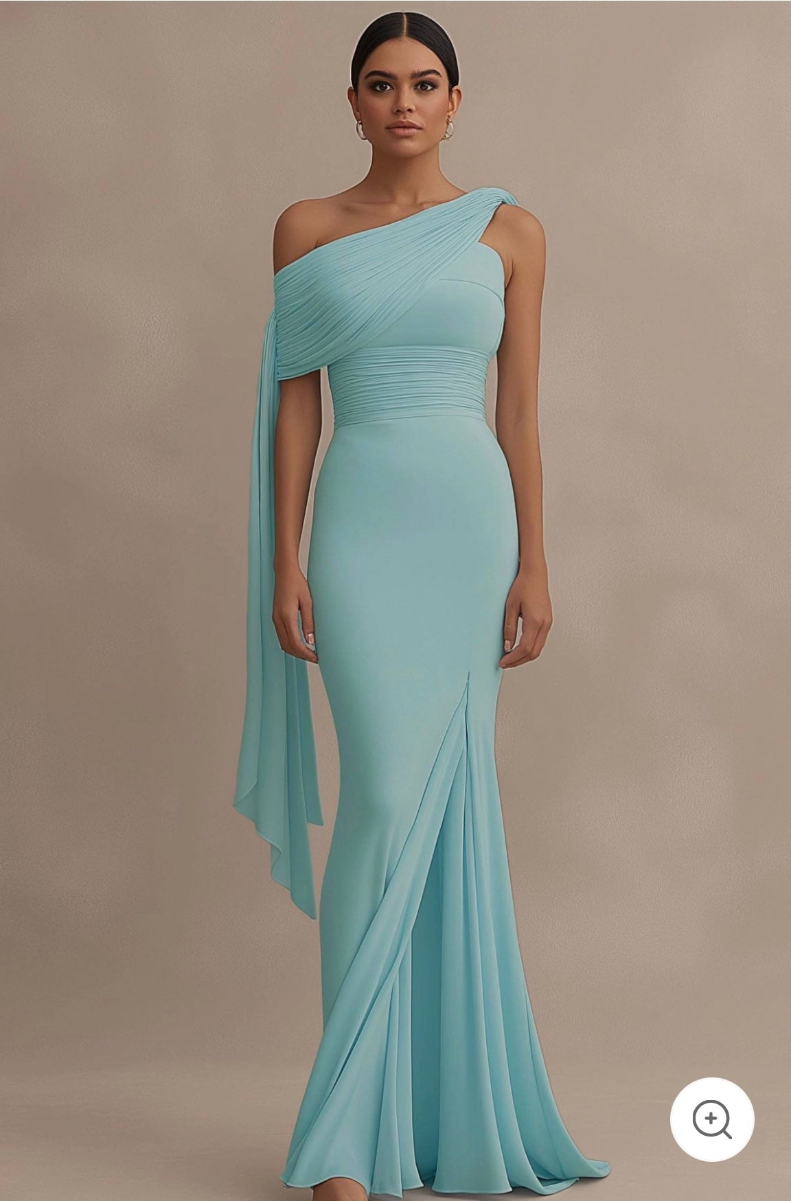 The Carlotta Dress radiates refinement and softness. With its elegant one-shoulder design, flowing draping, and feminine slit, this is the perfect dress for formal evenings, weddings, or galas.